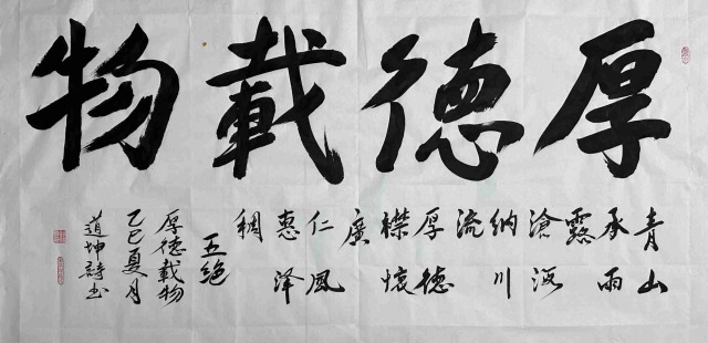 “德艺双馨”是中国艺术界对文艺工作者高尚品德与卓越艺术成就的高度评价,被视为艺术家的崇高追求。一代代艺术家,以深厚的文化修养、高尚的人格魅力、在探索中奋进,传承与拓进并举,成为文化的践行者、社会风尚的引领者。生逢伟大时代,要有与之匹配的艺术表达。作为当代著名书法家,赵道坤凭借深厚的艺术造诣、鲜明的创作风格和卓越的艺术成就,赢得了业界的高度认可。他不仅在继承中求发展,更在创新中开新境,拓展了书法的表现维度。他用艺术的眼光观察世界,用审美的笔触传递价值,用深刻的思想诠释生活,创作出一幅幅具有民族气派、史诗气韵的优秀作品。不仅深受艺术界和收藏界的认可,也被广大世人所共鸣和喜爱。