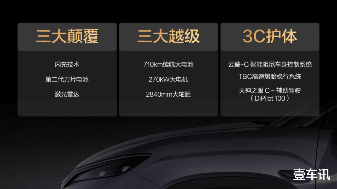 除了“第二代刀片电池、闪充技术及激光雷达”带来的三大颠覆,宋Ultra EV还带来了“三大越级、3C 护体”。宋Ultra EV的电机最大功率为270kW,为多种场景尤其是高速行驶带来了充沛的动力,其最高时速可达210km/h。