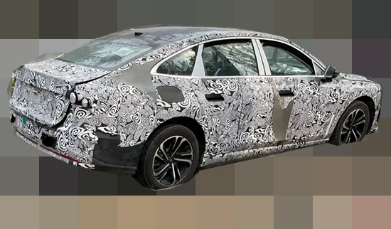 车身侧面变化不大,线条舒展流畅,搭配“刀锋”造型的双五辐式轮毂,营造出很强的运动感。尾部覆盖的伪装较厚,预计尾灯组造型会有所调整。此外,由于并没有看到排气系统,因此合理推测,新车大概率将搭载纯电动力系统。