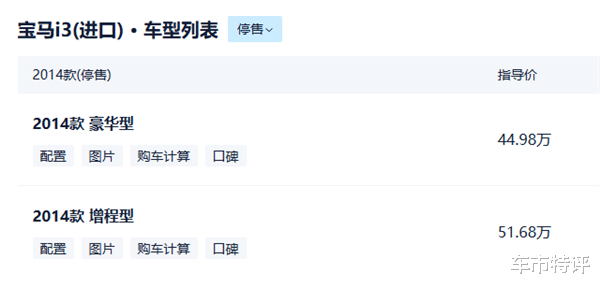 当时引入中国的 2014 款 i3 增程版,售价超过50万,配的是22度电池和170马力后驱电机,油箱仅有 8L ,亏电油耗 5L/100km,满油满电续航也就在270 公里左右。同款 22 度电池的纯电版,续航也仅有150km左右。