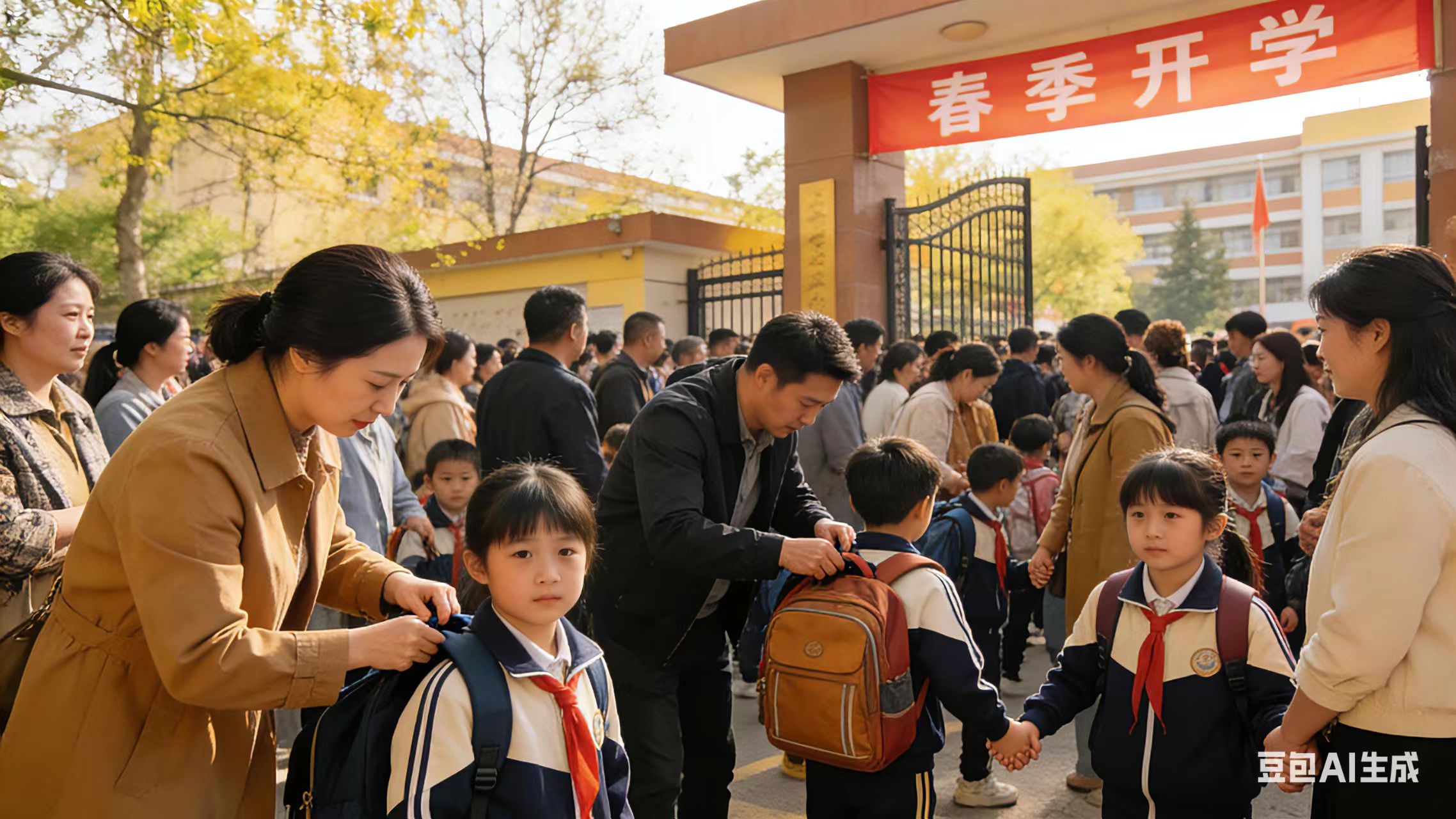 △ 校门口的人潮渐渐散去。妈妈转身往回走。