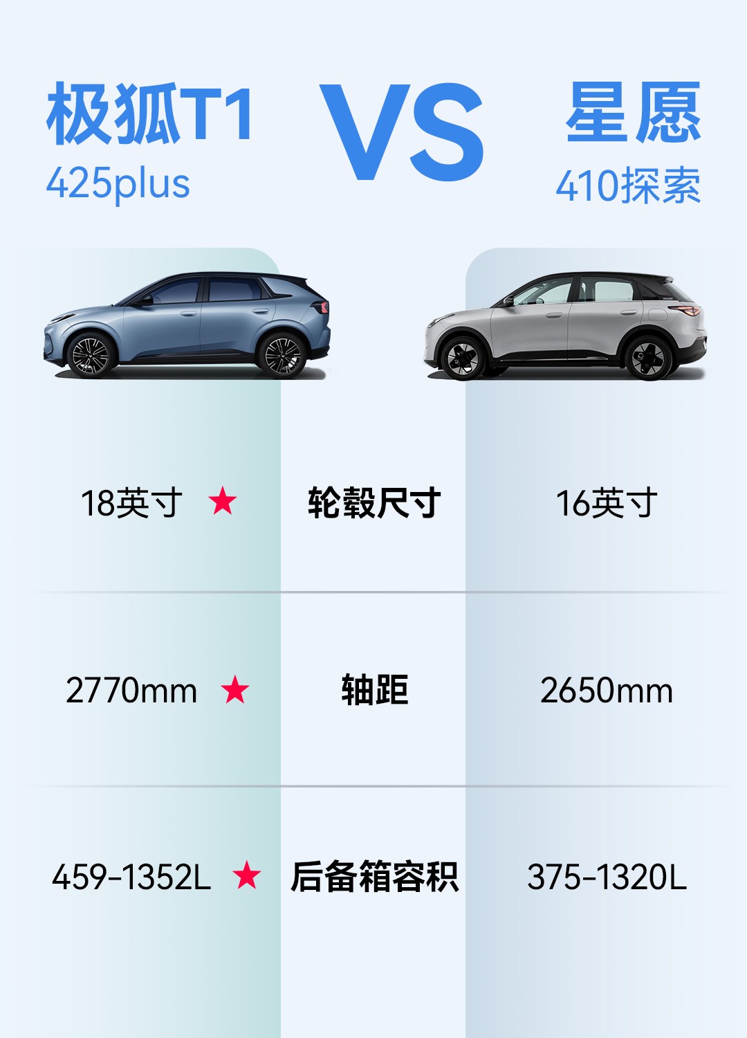 关注到极狐T1和吉利星愿在车身尺寸上的具体差异。轴距这个关键参数,T1是2770mm,星愿是2650mm,120mm的差距在实际乘坐中,尤其是后排,体感差异应该会比较明显。轮毂尺寸上,T1的18英寸对比星愿的16英寸,不仅影响观感,也可能关系到行驶中的路感反馈。