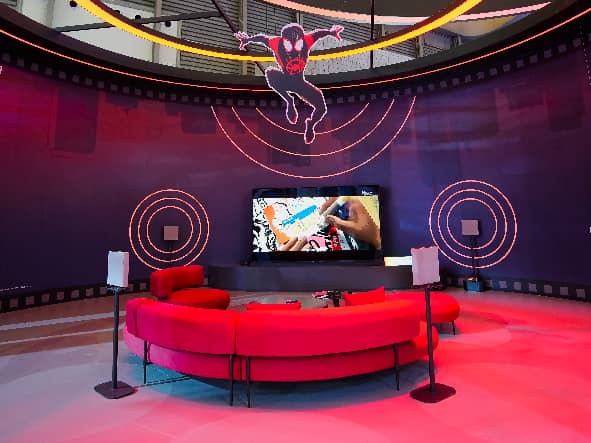 索尼以旗下索尼影业的经典IP《蜘蛛侠:纵横宇宙》为展示载体,通过巨幕真彩RGB电视画质与旗舰家庭影院HT-A9M2音效的协同,精准呈现了蜘蛛侠的红蓝战衣纹理细节、城市楼宇的光影层次以及动作场景的动态张力,打造出接近专业影院水准的视听效果。