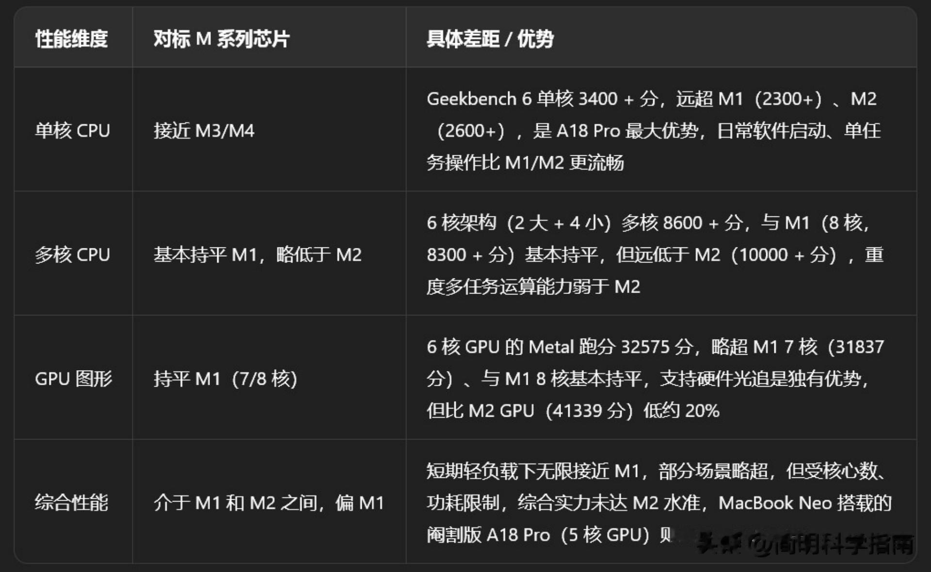 但是,细心的网友可能已经发现,MacBook Neo的A18 Pro与iPhone16 Pro的版本并不相同——其GPU虽仍为6核配置,但苹果通过软件锁定了其中一个GPU核心——显而易见,GPU性能比iPhone 16 Pro要差那么一点。