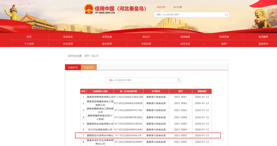 图片来源:信用中国(河北秦皇岛)网站