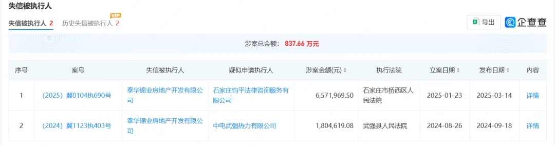 公开资料显示,昌黎县农信社第一大股东为泰华房地产,该公司目前已被打上“被执行人”、“限制高消费”和“失信被执行人”标签。该公司现存10条被执行人信息,被执行总金额6.74亿元。自2024年5月份以来,该公司及其法定代表人11次被法院限制高消费,涉案总金额 2992.73 万元。该公司还两次成为失信被执行人,涉案总金额837.66 万元。