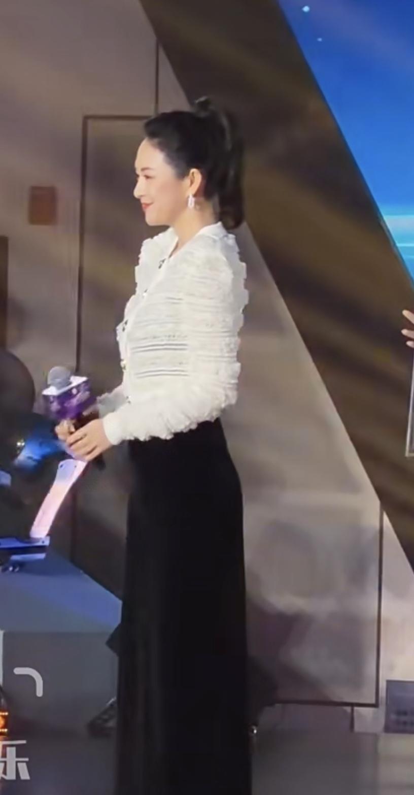 秦海璐倒是老老实实走安全路线,选了衬衫配百褶裙,一身黑各呼应,视觉上也还算利落大气。不过,有网友忍不住吐槽她小肚子有点抢镜,但我觉得整体还是过关的。那胸前大大的花,算是救场小妙招,让一身黑不那么单调,至少看侧脸气质还是在线的,比同场很多“翻车造型”靠谱多了。
