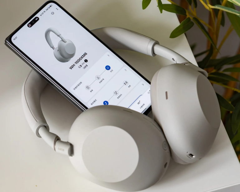 佩戴感做了升级,比上一代 XM5 轻了一点,耳罩是柔软皮革耳垫,里面的记忆棉能完全贴合耳廓,戴一下午都不会感到耳朵酸痛,而且透气性也比老款好,头梁的材质也更软了,戴在头上没有压迫感,