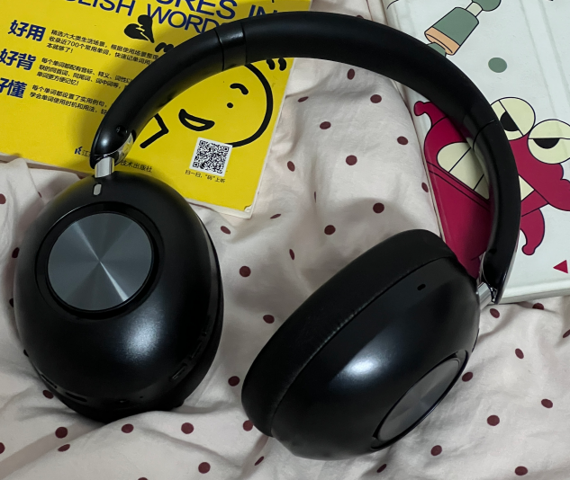 音质上,它搭载了40mm镀钛复合振膜,调音偏流行风格,低频量给得很足但又不轰头,像鼓点和贝斯的细节质感就很明显,中频人声还很清晰自然,很是通透,连歌手换气的小细节都能听到了,高频也不刺耳,日常用它听歌、追剧,沉浸感还是很不错的。主动降噪日常也够用了,地铁里的轰鸣声、办公室的空调声能滤掉大半,不过遇到人声多的地方,比如菜市场、早高峰的公交,还是会有一些杂音漏进来的,不过不影响使用感。