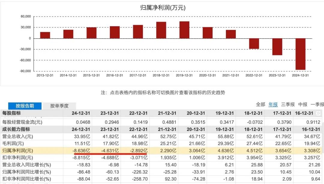 收缩是表象,亏损才是内核。翻阅其财报,转折点清晰可见。自2022年起,公司业绩急转直下,出现了上市以来的首次亏损。2022年至2025年,其资产负债率直接从56.21%飙升到63.1%,累计亏损额超过16亿元。这一数字,甚至超过了此前四年(2018-2021)的净利润总和。