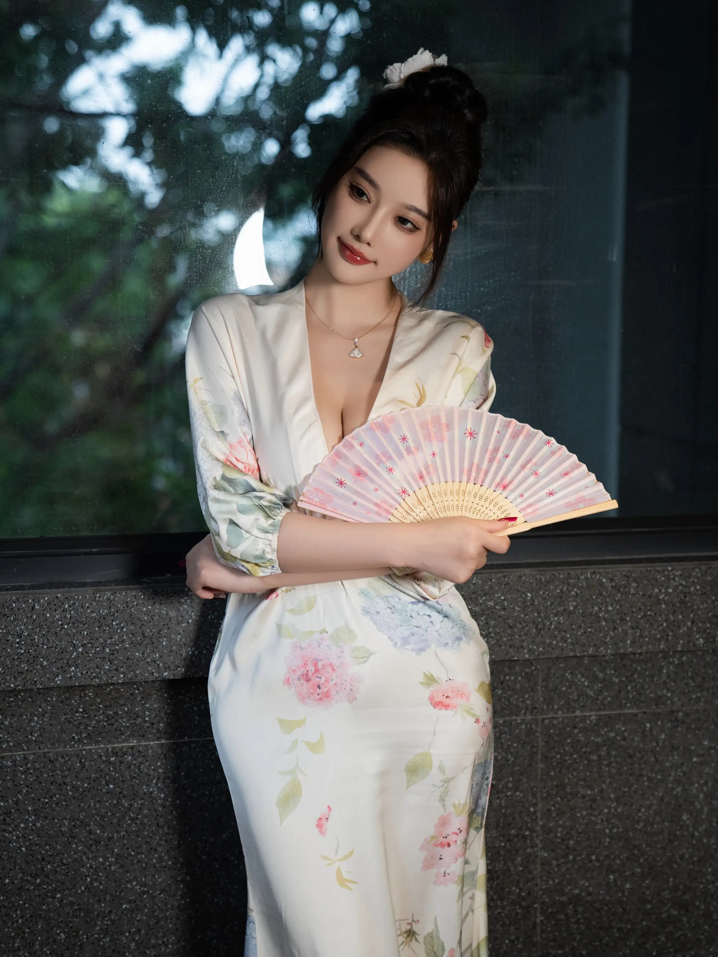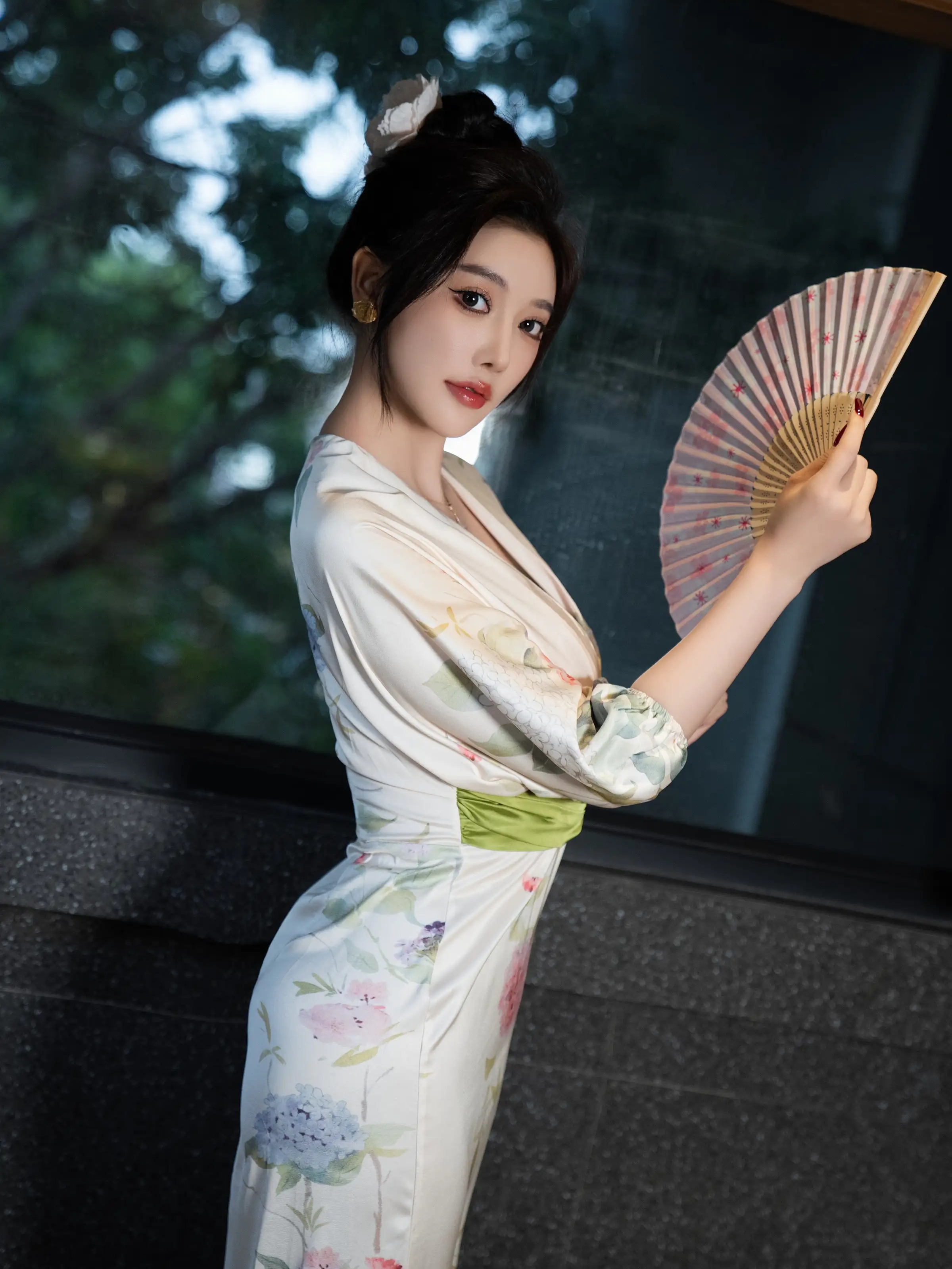 杨晨晨写真|窗边的东方美学:素衣绘繁花,折扇藏温柔