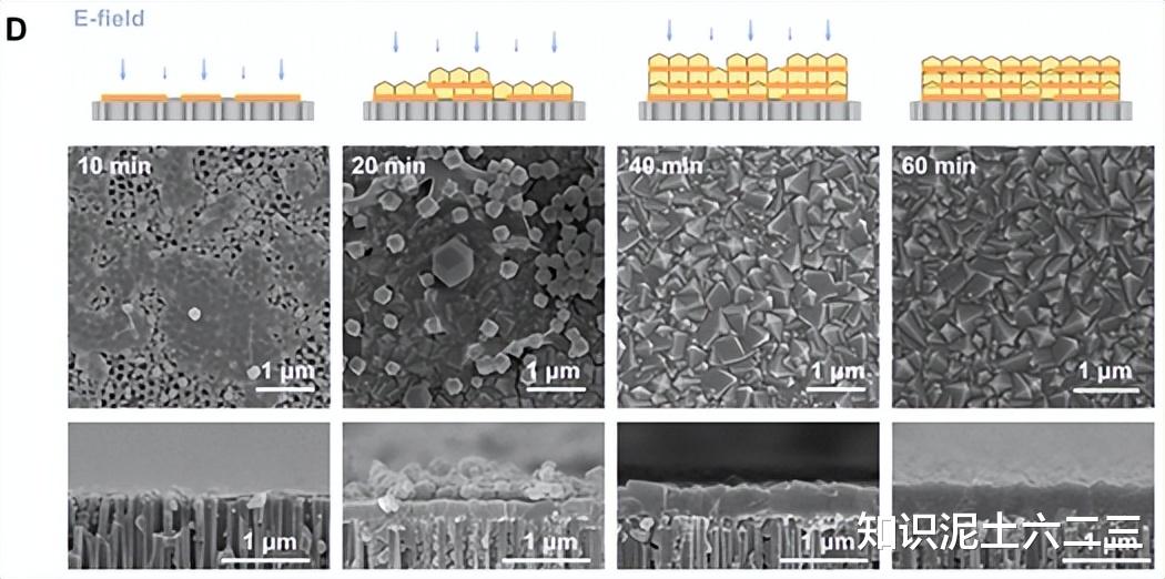 复合纳米片经电泳驱动至导电基底,同步发生 ZIF-8 晶体成核生长与 PGO 沉积,60 分钟即可形成连续膜层;