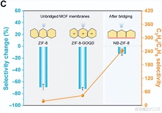 对比实验显示,未桥联的 ZIF-8 膜在高压下 10 小时内即丧失分离能力,而引入无法形成桥联的 GO 量子点的复合膜,选择性下降超 70%,证实桥联结构是耐压关键。