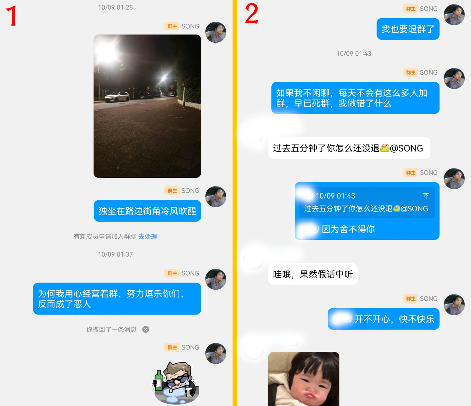 随着时间流逝,我的悲伤并没有好一些。10月11日凌晨,我把群这几个月聊天记录看了一遍,一直看到早上8点。