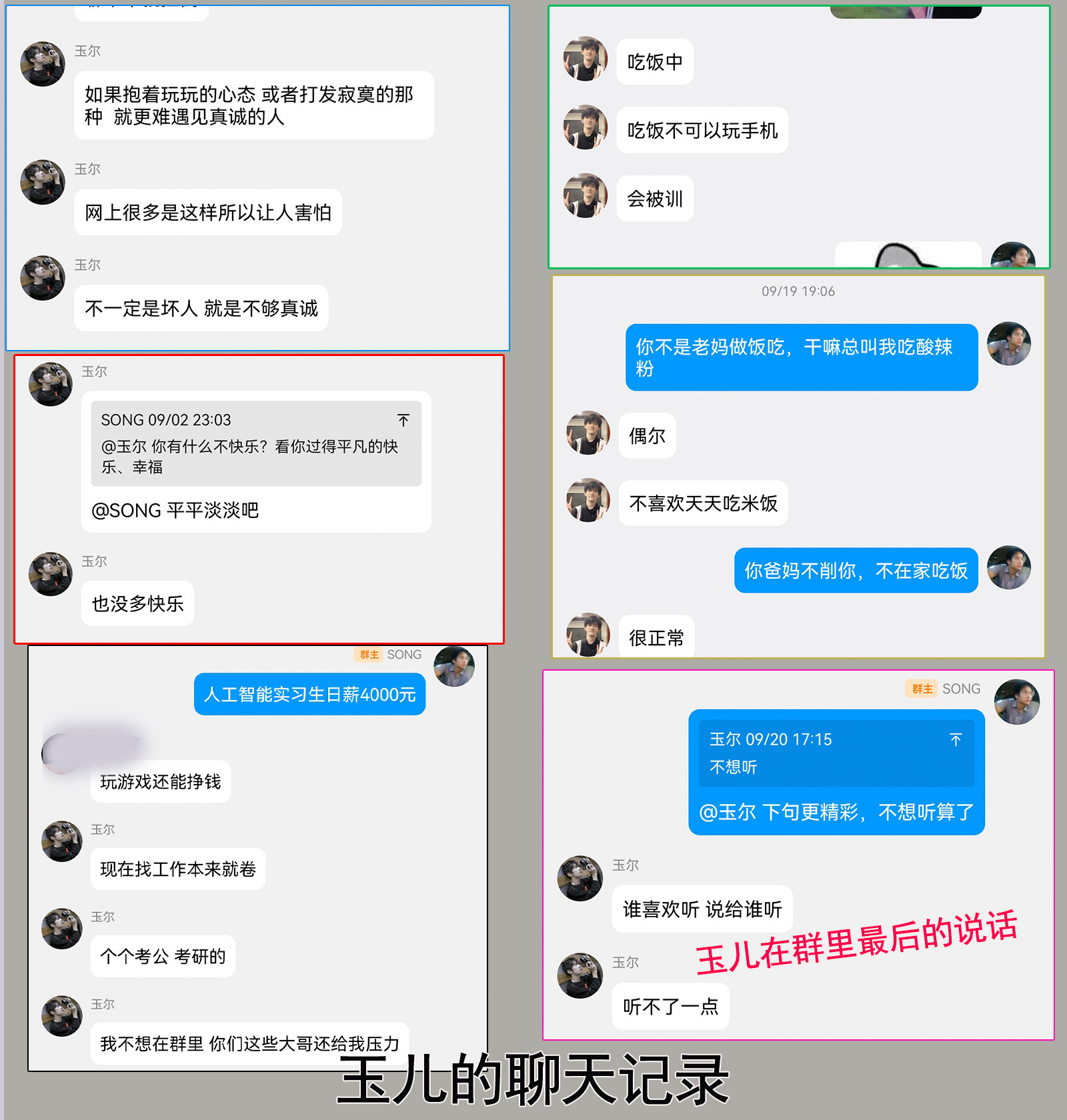 "谁喜欢听 说给谁听" "听不了一点",这是她在群里最后对我说的话,然后撤了视频就退群。
