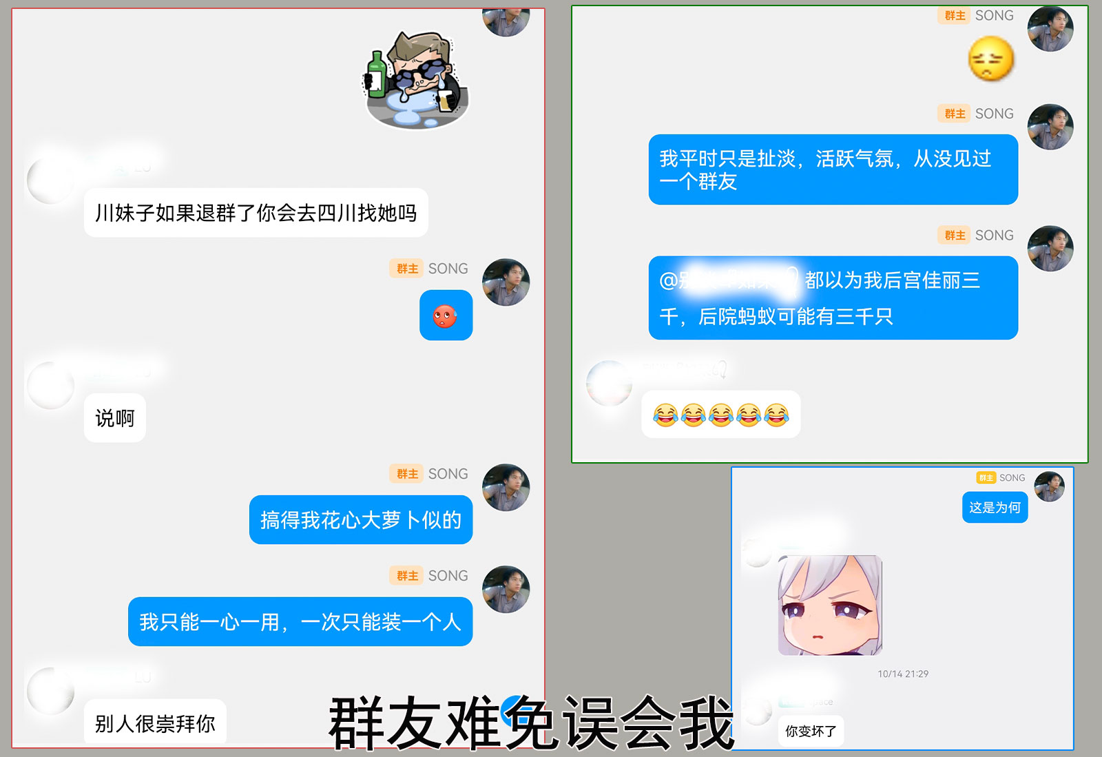 不像她们对我了解透切,我每天都在群里和多人互动。