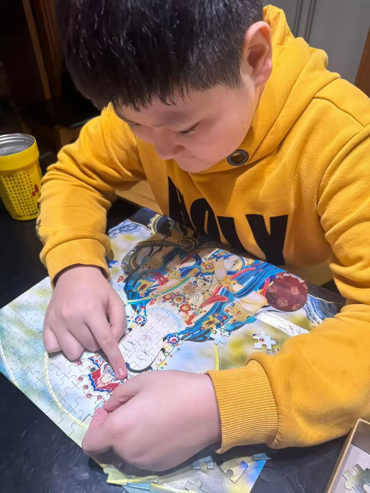这不,聂磊老师昨日在朋友圈里晒出的一张二宝手拼"水月观音"的图片,让我感动之余,又浮想联翩。