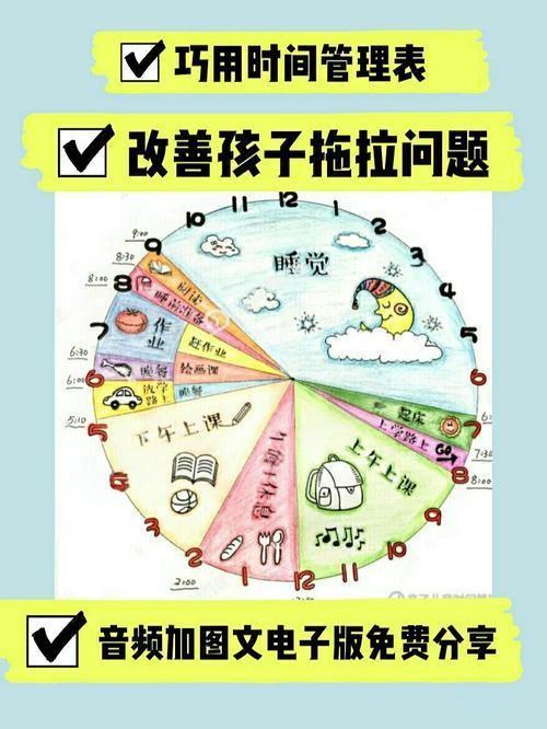 和孩子一起做一个“魔法时间表”。可以用彩色贴纸、画画或者照片,把每天的事情安排得清清楚楚。比如: