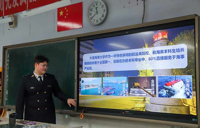 活动中,团队紧扣教育高质量发展主题,将高校办学优势、学科特色与中学生成长需求精准对接。队员们以亲身成长经历为蓝本,分享高中学习方法、升学规划路径、专业选择逻辑与大学生活体验,系统介绍大连海事大学在服务“交通强国、海洋强国” 国家战略中的办学定位与人才培养成果,让高中生在了解大学、认识专业的同时,树立清晰的人生目标与学业规划。