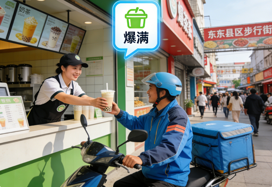 在东部某县域的步行街,一家本地奶茶店通过抖送将订单范围覆盖到了五公里外的开发区;在西南一个新兴的旅游小镇,民宿老板用它将特产直接送到游客返程的高铁站。订单“爆满”的提示,在这些区域接连亮起。