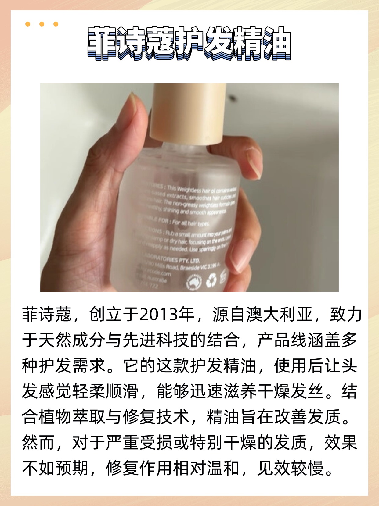 干枯毛躁星人最关心护发精油可以怎么用?其实用法很多,日常护理洗后毛巾吸干水分,取适量搓热涂发中到发梢,再吹干,顺滑度立马