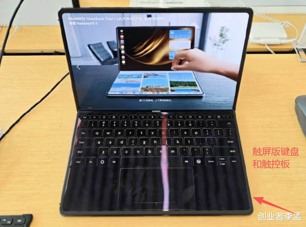 这两天我在看短视频的时候,还刷到了一个博主在聊华为的折叠屏电脑,他在给华为提意见,建议华为将屏幕键盘设计在触控板的下面,将触控板放在右上角,然后左边可以做很多常用功能区域,键盘下移一点位置!