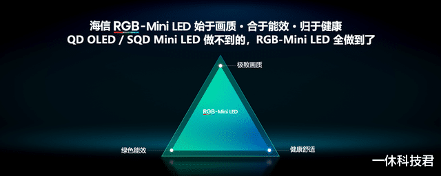 海信E8S的核心优势,源于RGB-Mini LED技术的代际突破,对QD-Mini LED、SQD-Mini LED等单色背光量子点Mini LED技术形成全方位体验碾压,其用户价值集中体现在画质、能耗、健康三大核心维度。