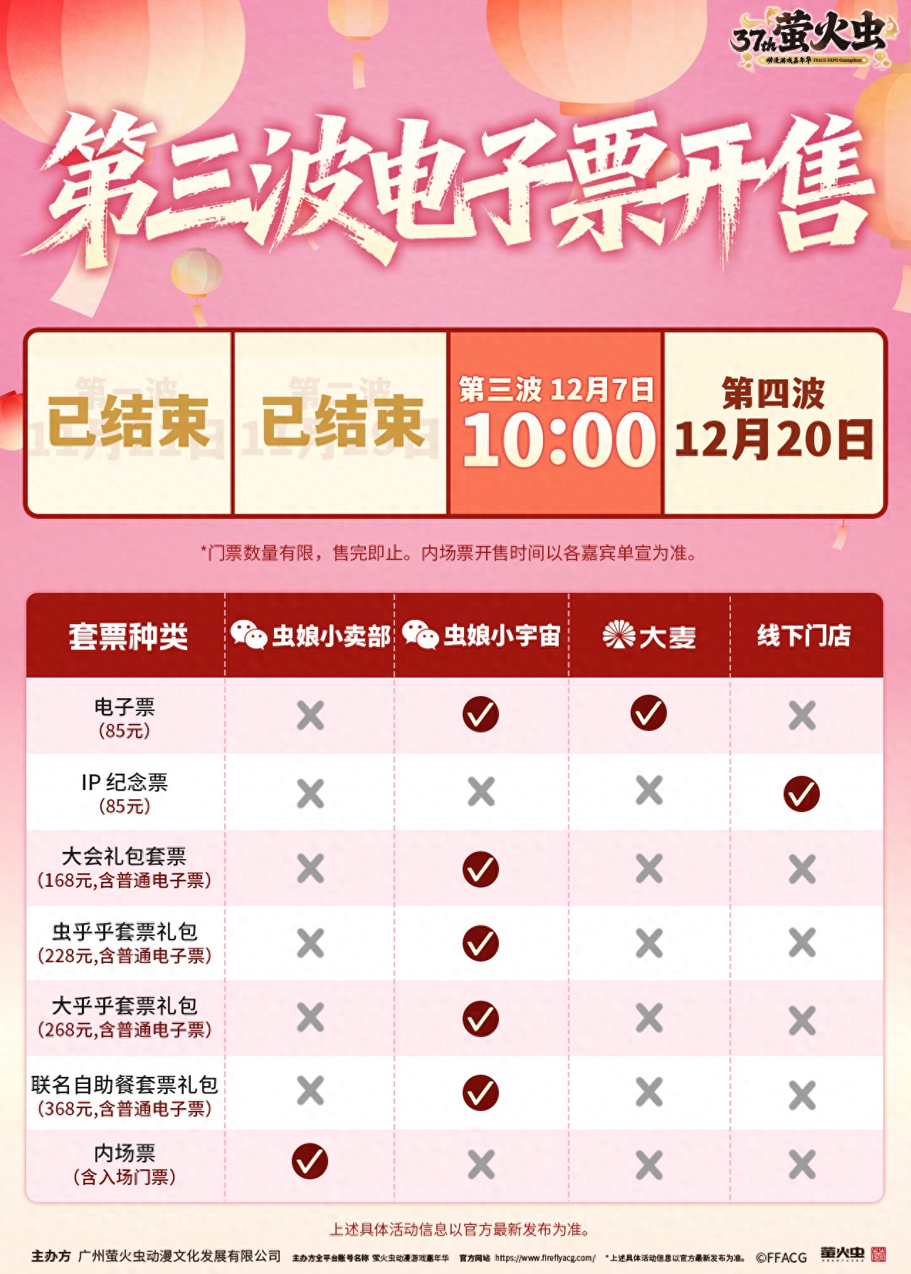 12月7日 萤火虫门票 大动作来袭!【棕色尘埃2】ip纪念票面终于揭开神秘面纱,官方授权线下票点均有售~第三波电子票10:00开售,*仅在VX小程序「虫娘小宇宙」,错过前两波的小伙伴这次务必定好闹钟,精准锁定入场资格。