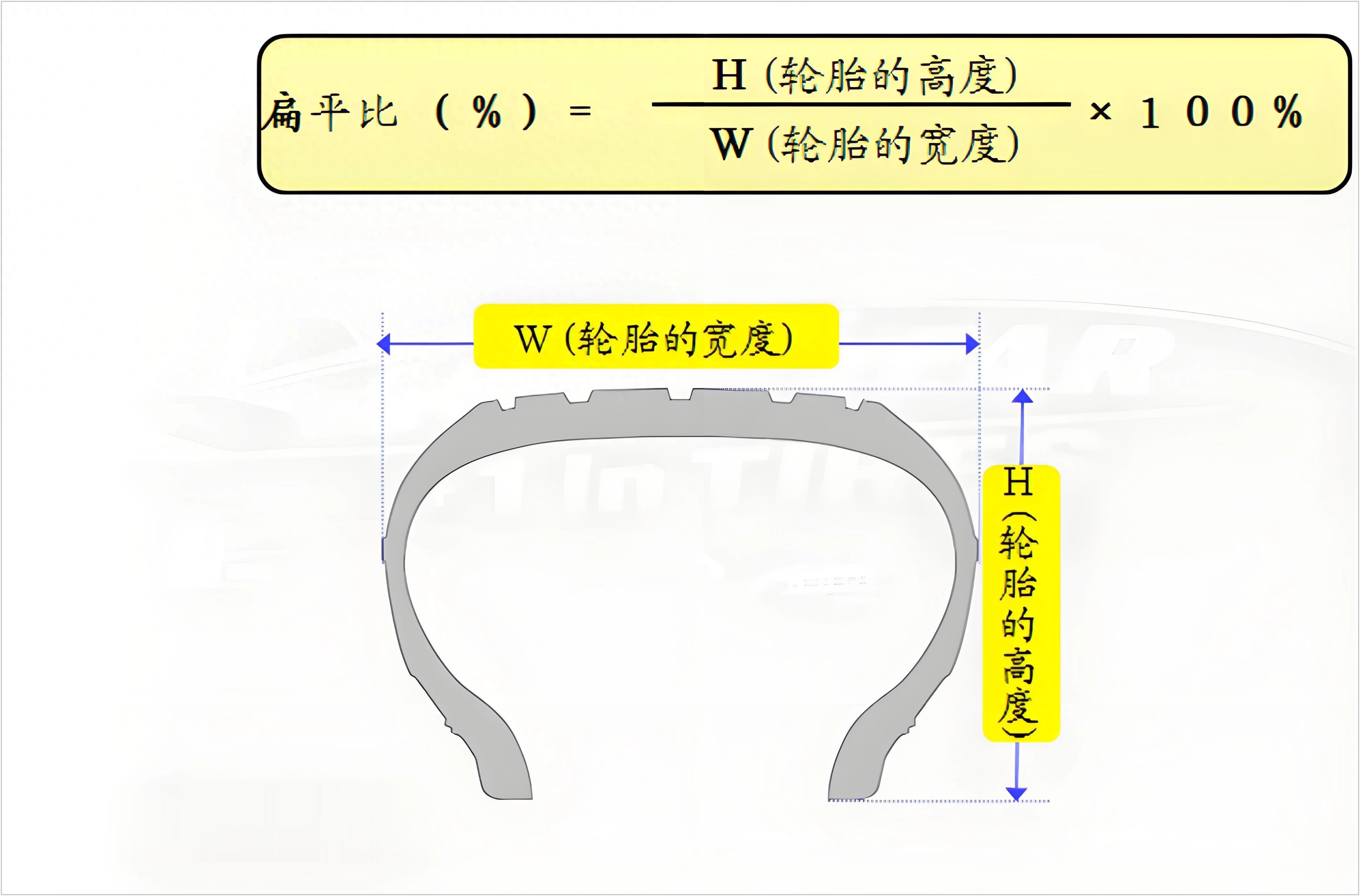 2、中间扁平比,是胎壁高度占胎面宽度的百分比,直接决定胎壁厚薄;