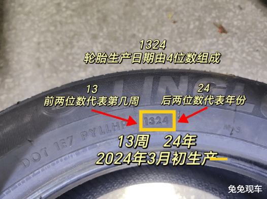 如何判断轮胎年龄?每个轮胎侧面都有一串以“DOT”结尾的代码,最后四位数字代表生产日期。例如“1324”表示2024年第13周生产。购买轮胎时,一定要检查这个日期,避免买到库存过久的“新胎”。