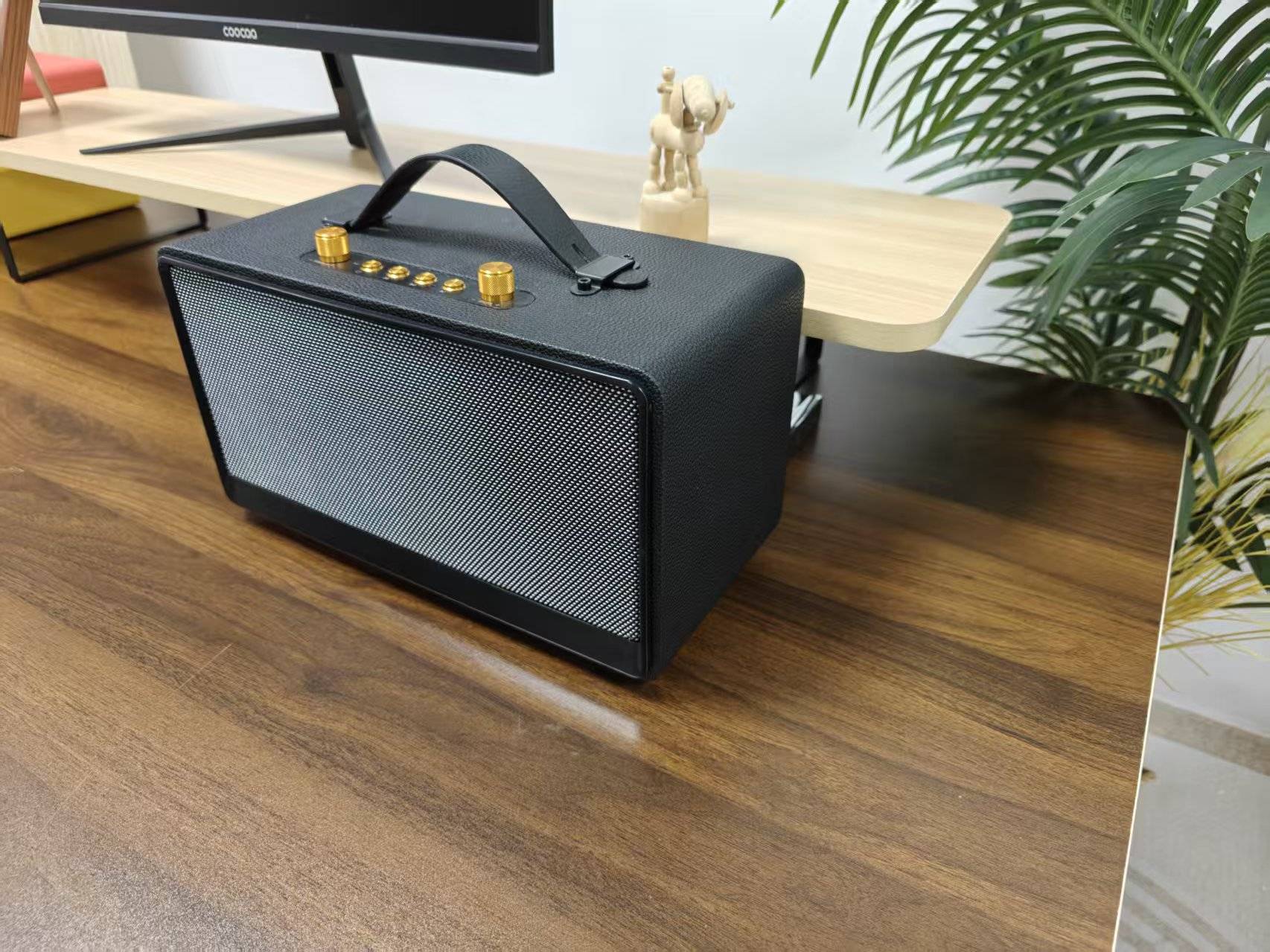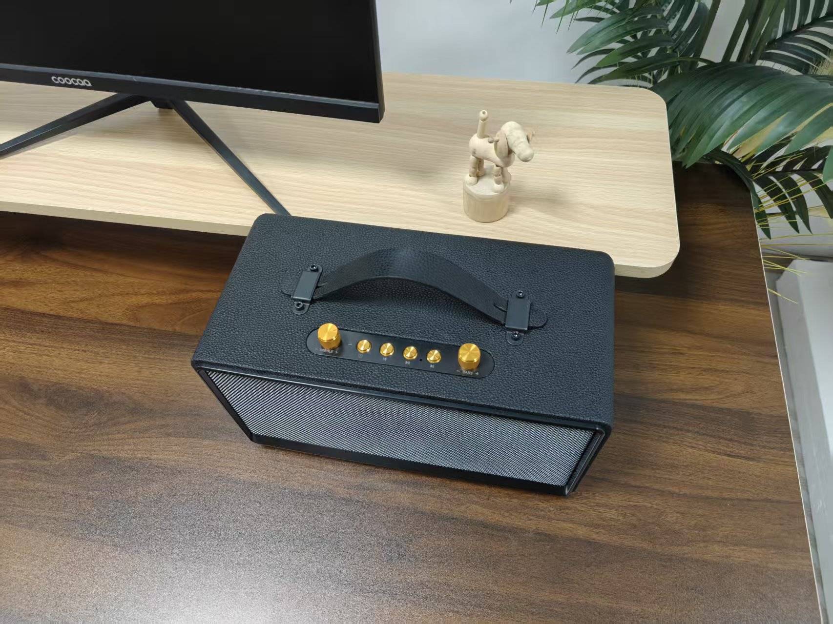这款蓝牙音箱采用全实木箱体,经典的复古风格与天然木纹相结合,呈现出一种高级且沉稳的视觉效果;整体设计非常独特,适合喜欢复古风格的用户。