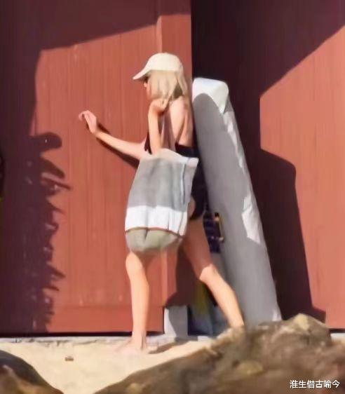 当她一个人在沙滩上行走时,露出自己好看的背影,一双大长腿远远看去像是接近两米,显得她很高挑。