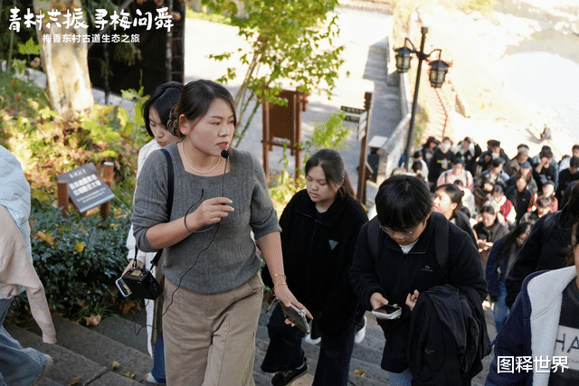 活动的第一站,同学们走进了东村声名在外的6500亩梅林。虽未到梅花盛放时节,但绵延的古道已足以让人想象“香雪梅海”的壮丽景象。这条最早可追溯至唐宋时期的古道,蜿蜒在静谧的山林间。学子们踏着承载历史的石阶,沿途打卡记录,不仅锻炼了体魄,更在行走中感受着历史的脉搏与自然的呼吸,对这片土地孕育的深厚文脉有了更深的感知。