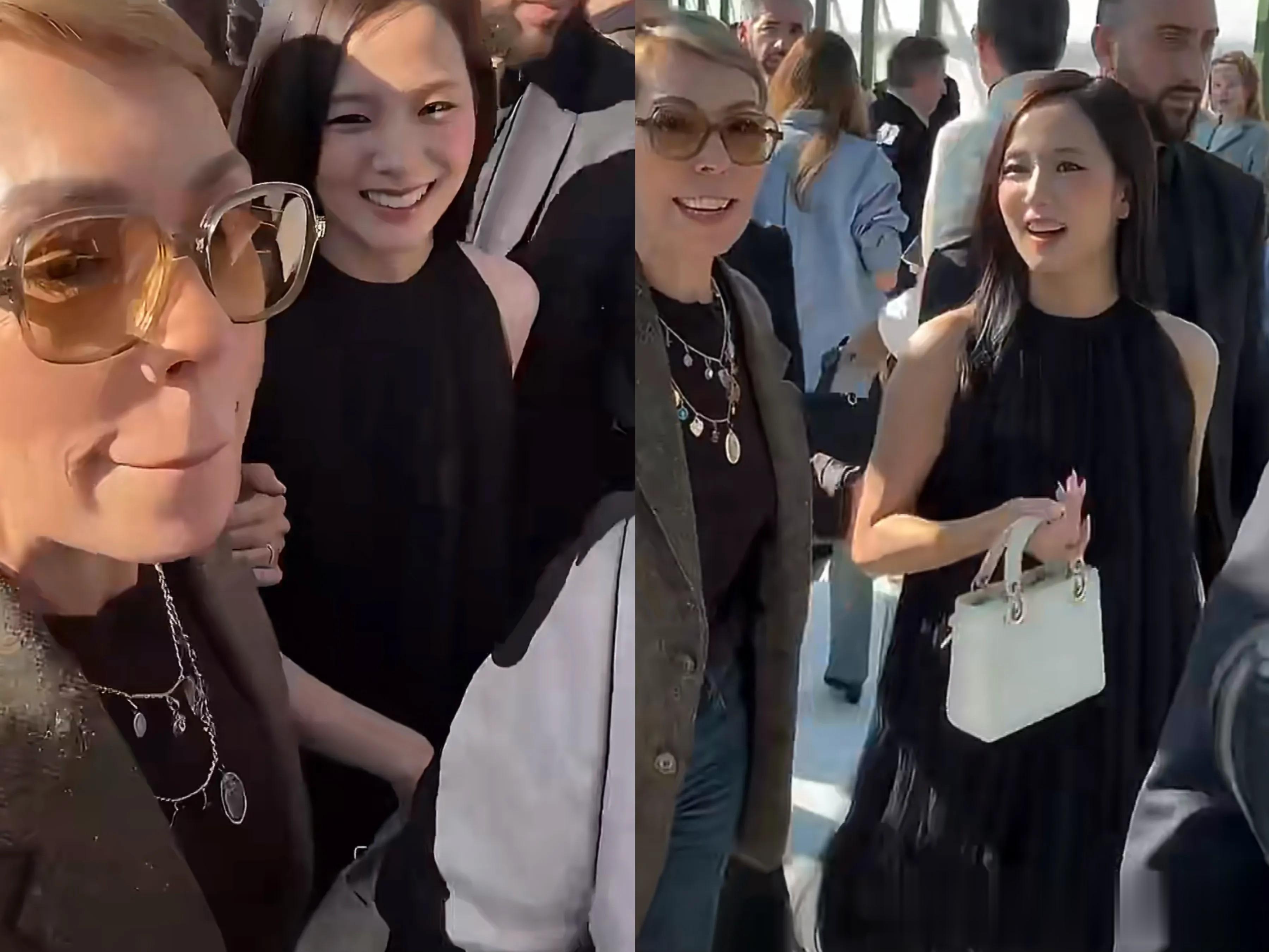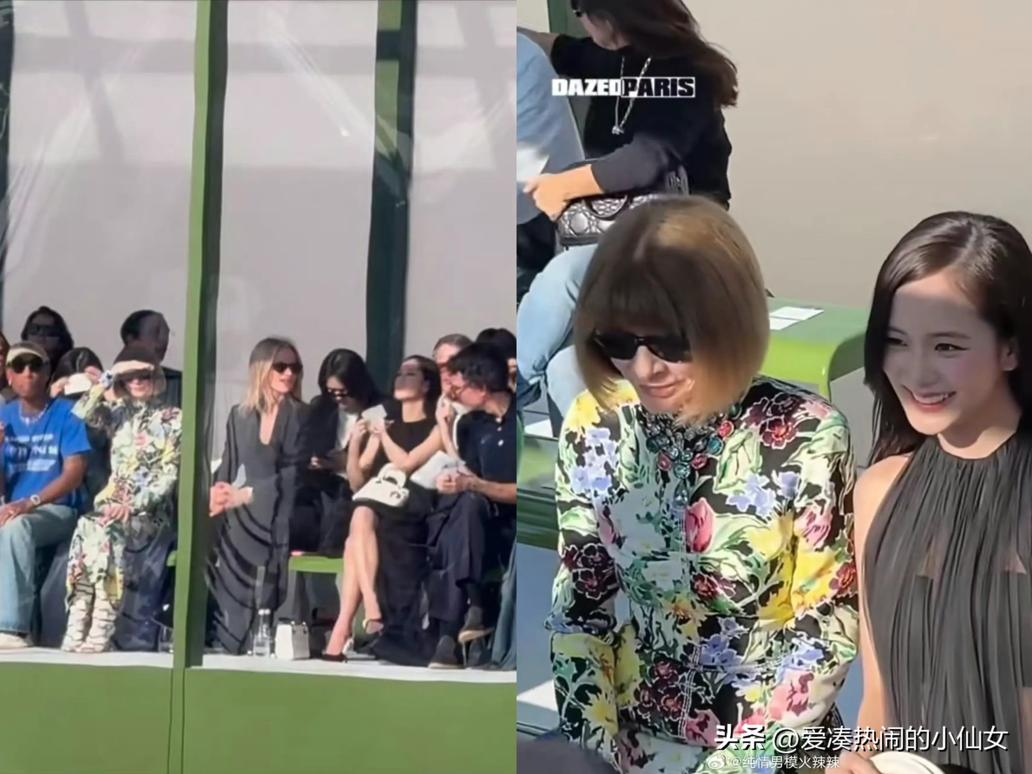 看秀位置被安排在迪奥CEO、LVMH集团大公子德尔菲娜·阿尔诺与《VOGUE》全球主编安娜·温图尔的中间。