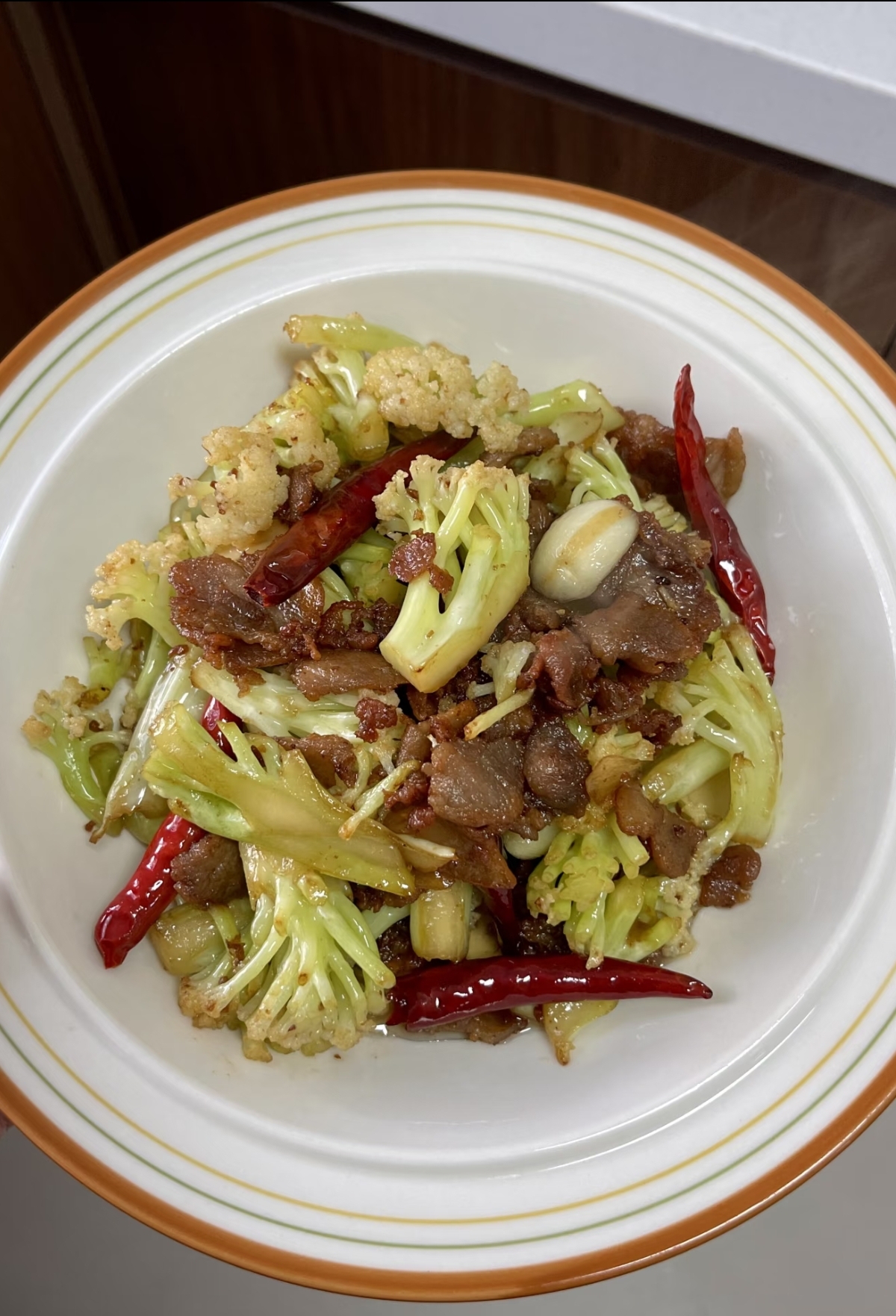 最后,撒上一把葱花,快速翻炒两下即可出锅装盘。看着盘中油润亮泽、香气扑鼻的五花肉炒菜花,迫不及待地夹上一筷子送入口中。五花肉焦香有嚼劲,菜花脆嫩入味,两者在唇齿间交织,让人欲罢不能。这道菜,简单却不平凡,它用最朴实的食材,诠释了家的味道。在这个快节奏的时代,愿你我都能在这一盘焦香脆嫩中,找到那份最简单的满足与幸福。