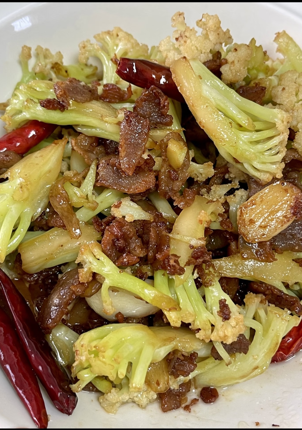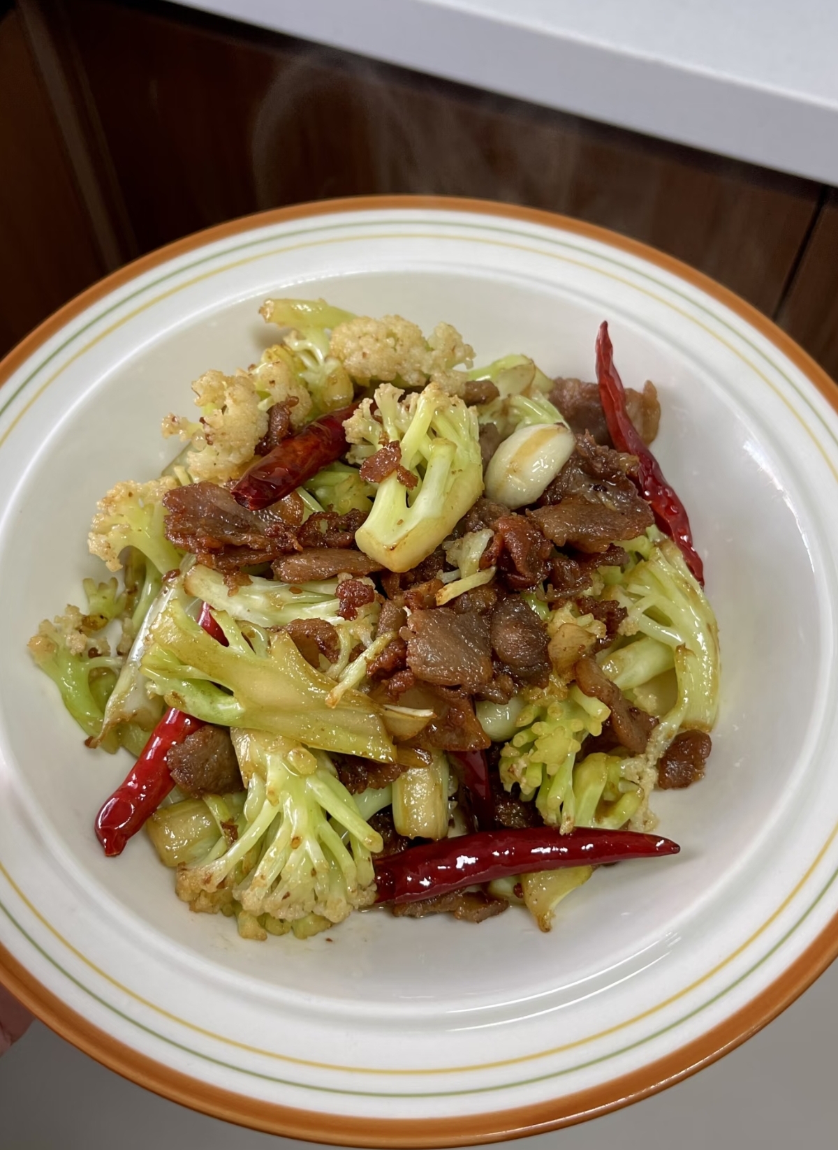 厨房里总有些食材的相遇,是命中注定的绝配。当五花肉那丰腴的油脂遇上菜花清脆的骨架,一场关于香气与口感的化学反应便悄然发生。这道五花肉炒菜花,是我心中家常菜的“天花板”,它没有复杂的技法,却有着最抚凡人心的魔力。想象一下,五花肉被炒得边缘微焦,呈现出诱人的琥珀色,带着一丝嚼劲却不油腻;而菜花则吸饱了肉的脂香,依然保持着爽脆的口感,每一口都是层次分明的享受。这对CP,我锁死了,钥匙我吞了,谁也别想把它们分开。