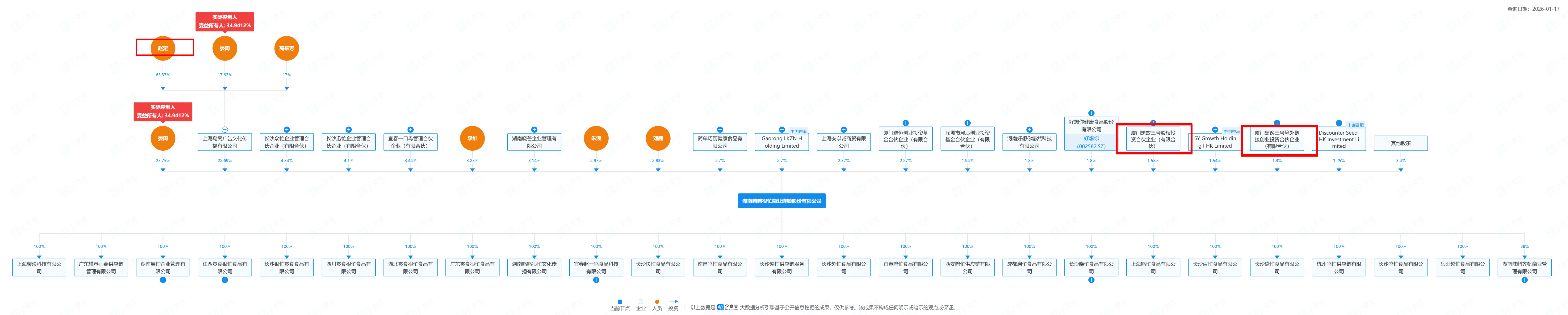 最早进入的黑蚁资本,同时也是零食连锁品牌鸣鸣很忙的投资方。B轮入局的“上海鸟窝”,背后则是赵一鸣零食创始人赵定。在B+轮融资后,黑蚁共计控股6.06%,上海鸟窝控股0.74%。