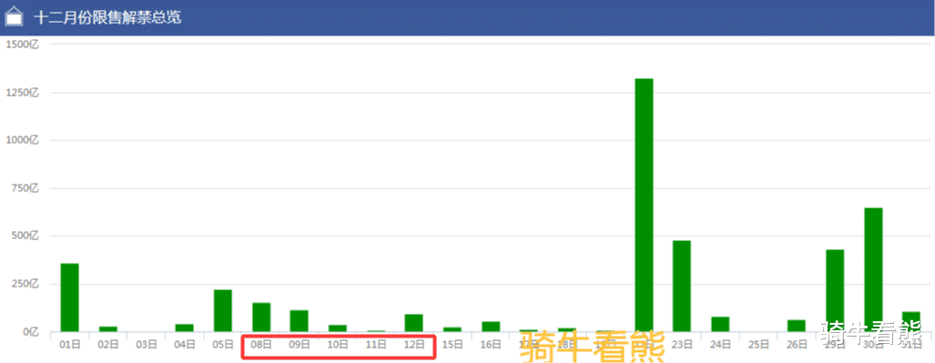 12月8日(周一)、12月9日(周二)、12月12日(周五)是下周解禁的高峰期,并且有部分个股解禁比例已经超过了80%,特别是12月9日(周二)的宁波远洋。一定要注意这些个股不要“踩雷”。