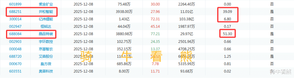 12月8日(周一)井松智能解禁比例达到39.09%;晶品特装解禁比例达到51.3%;建研设计解禁比例达到30%。
