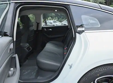 车身侧面采用悬浮式车顶设计,搭配18英寸旋风式轮毂,让4730mm的车长更显修长,隐藏式门把手不仅提升颜值,更优化了风阻系数。车尾部分,贯穿式LED尾灯与头灯形成视觉联动,灯组内部的点阵式光源在夜间点亮时辨识度拉满,微微上翘的小鸭尾设计增添运动气息。