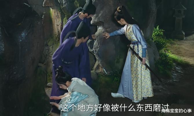 男主萧瑾瑜(王子奇饰演)在湖边的一处假山附近找到了打斗痕迹,并且确认死者是侍卫伍两。