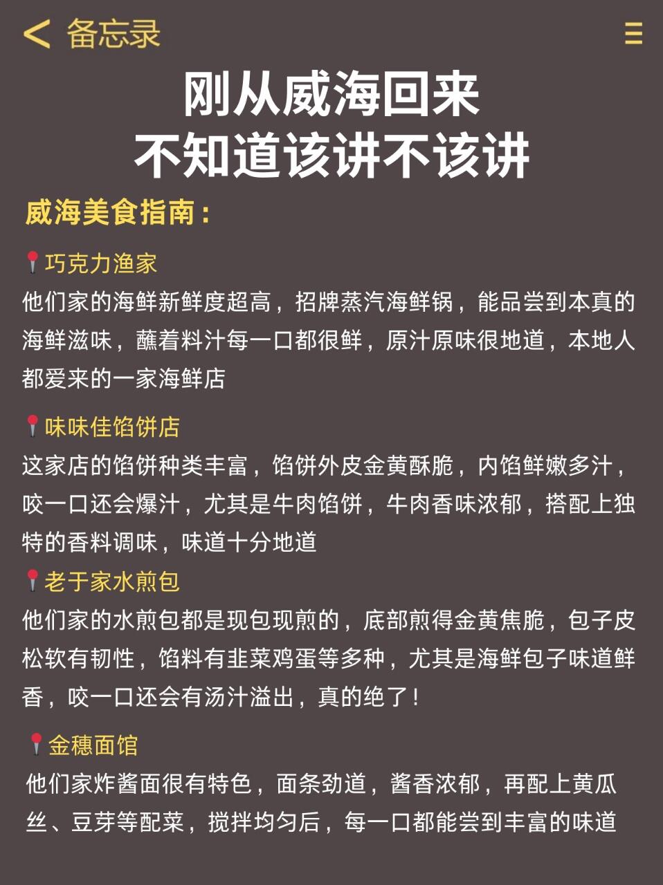 😋想吃海鲜就去巧克力渔家‼️巧克力渔家海鲜超新鲜,招牌蒸汽海鲜锅原汁原味,还有其他的家常小菜也很不错🥰。✅味味佳馅饼店的馅饼种类多,外皮酥脆,内馅鲜嫩多汁,尤其是牛肉馅饼香味浓郁很不错。‼️老于家水煎包现包现煎,底部焦脆,馅料丰富。✅爱吃面🍜的就去金穗面馆,他家的炸酱面和海鲜面很劲道,酱香浓郁,配菜丰富,味道很棒!