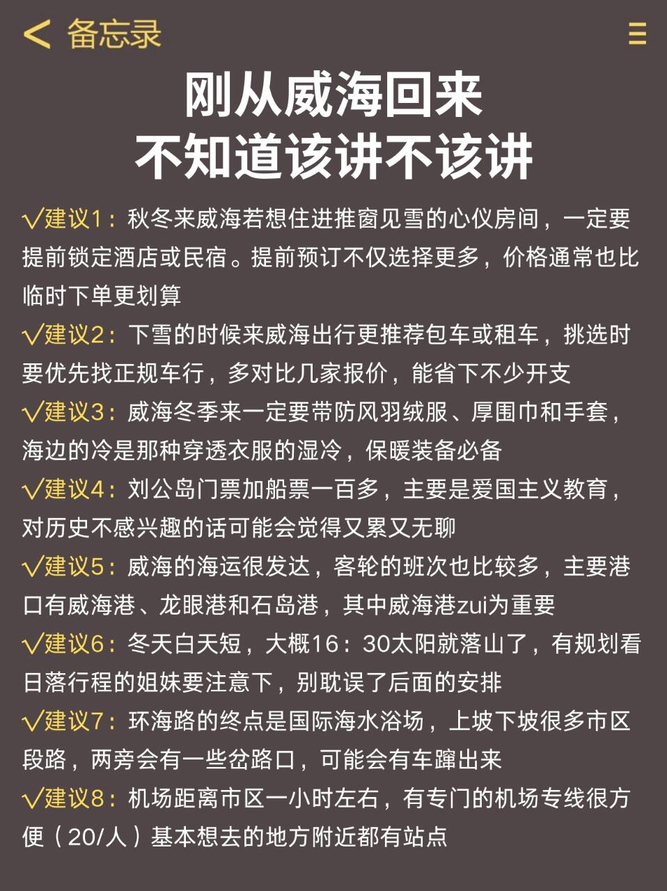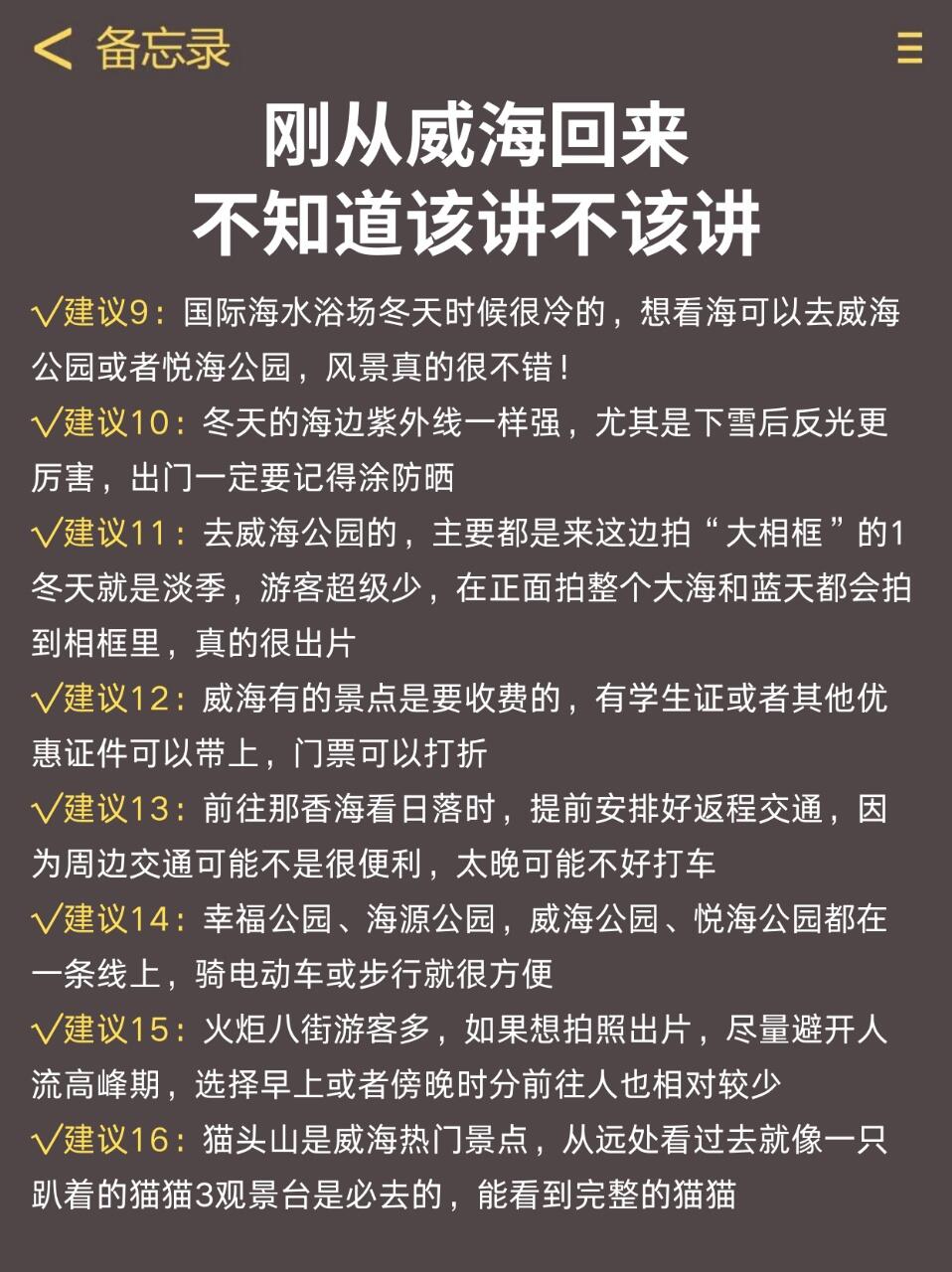 ‼️冬季去威海旅游一定要注意保暖!多穿点加绒的衣物🧥还有防晒也别偷懒!冬天海边紫外线还很强,不涂防晒真的很容易晒黑😭