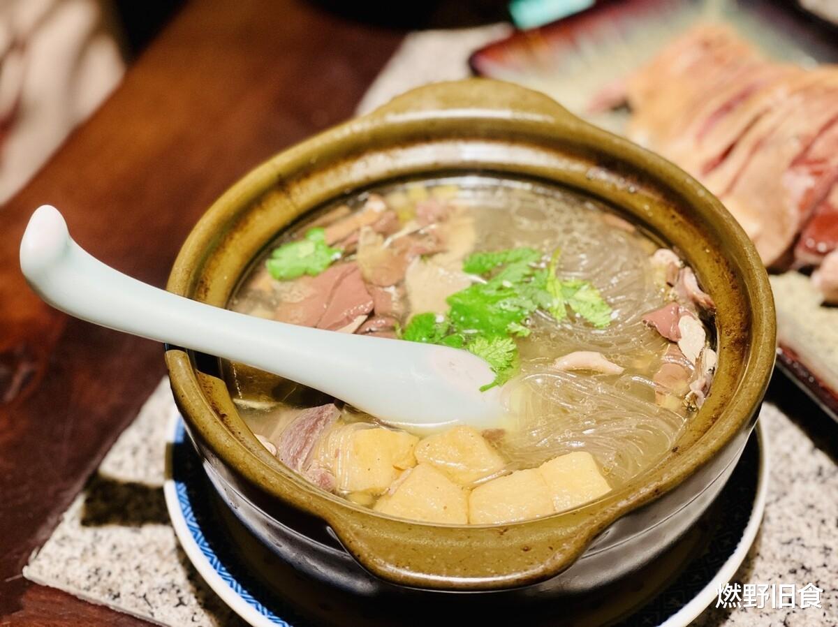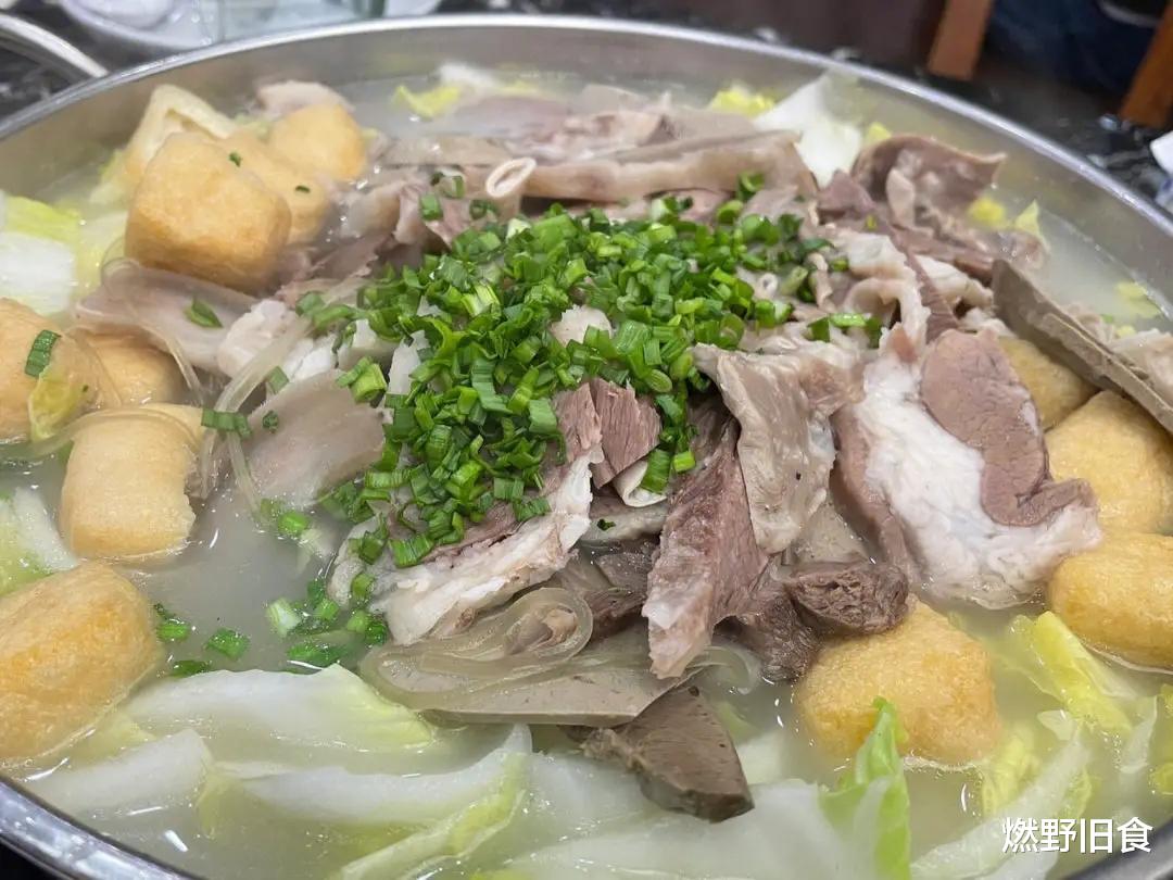 它由鸭血、鸭胗、鸭肠、鸭肝等加入鸭汤和粉丝制成,口感鲜香,爽口宜人。