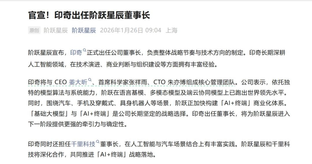 01 “双董事长制”背后翻开阶跃星辰最新完成的50亿元B+轮融资名单,你确实能看到吉利系的身影,但如果据此认为这是一家“吉利系公司”,那就低估了这场博弈的复杂性。