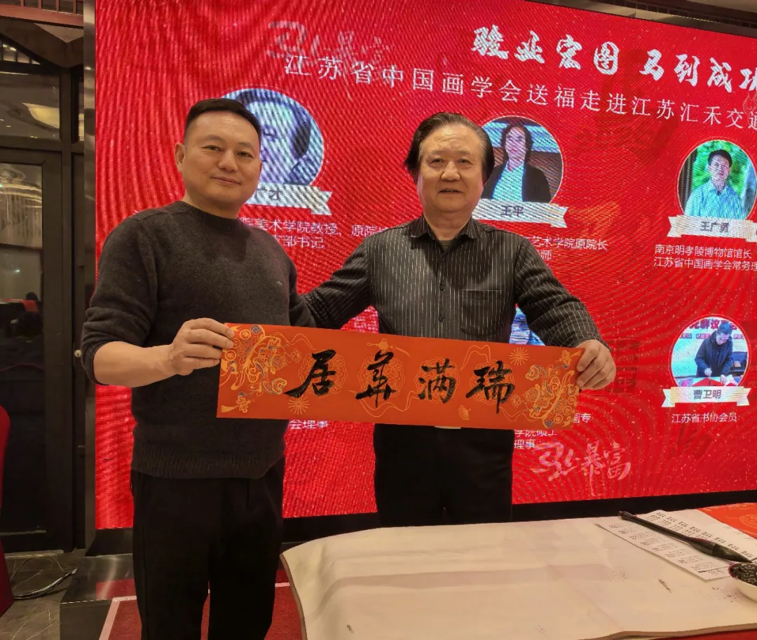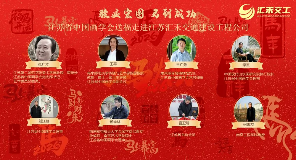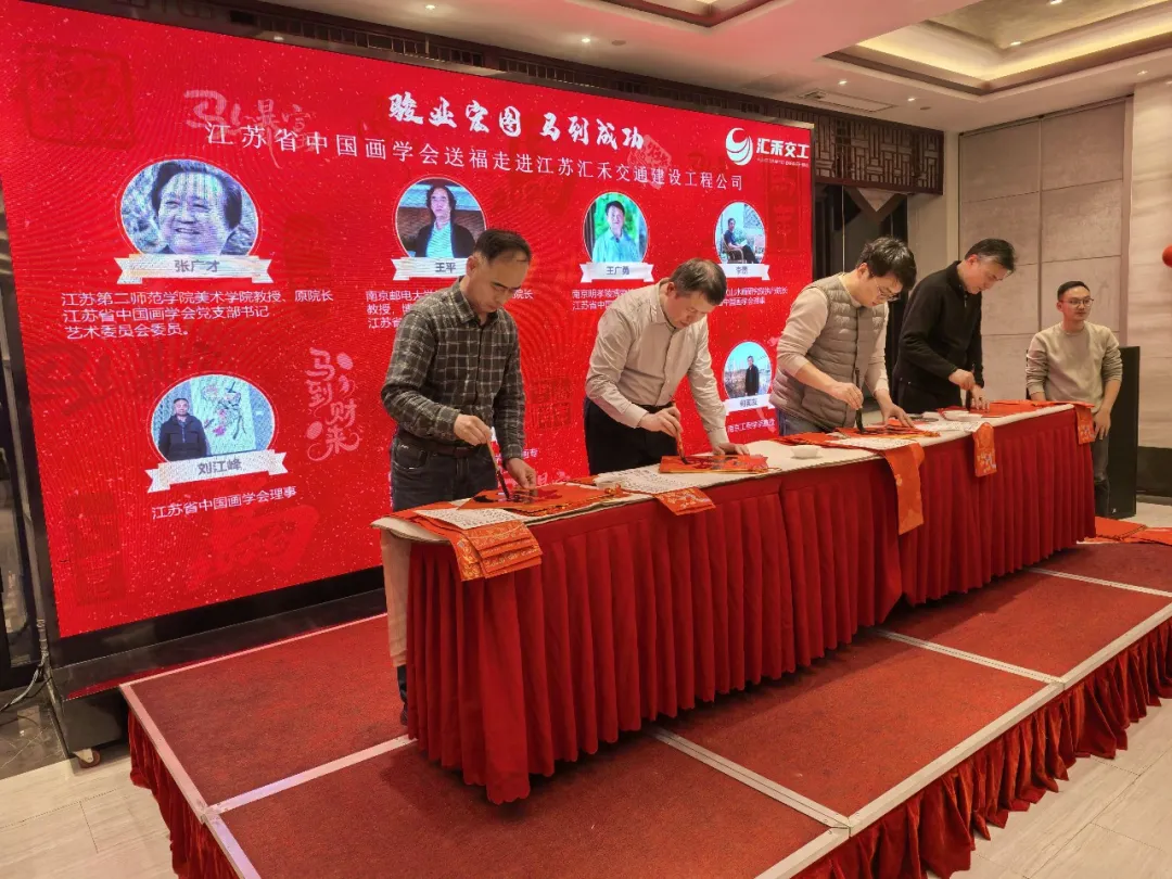 江苏汇禾交通建设工程有限公司董事长马成云对学会的送福之举深表感谢:“非常感谢江苏省中国画学会的艺术家们送福入企,这份饱含文化温度的祝福让全体员工倍感温暖与鼓舞。新的一年,我们将秉持‘一马当先、快马加鞭、勇往直前’的奋斗姿态,深耕交通建设领域,为国家基础设施建设和经济社会发展作出新的更大贡献。”