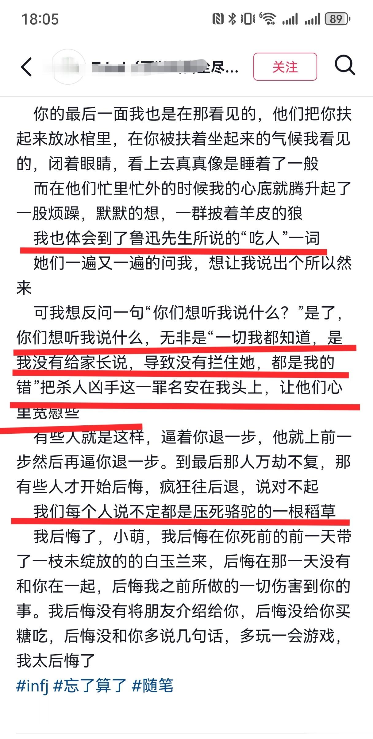 在长长的一段文字里读到了博主对原生家庭深深的无力感,一群暴躁且懦弱的成年人,试图说服自己他们没问题。