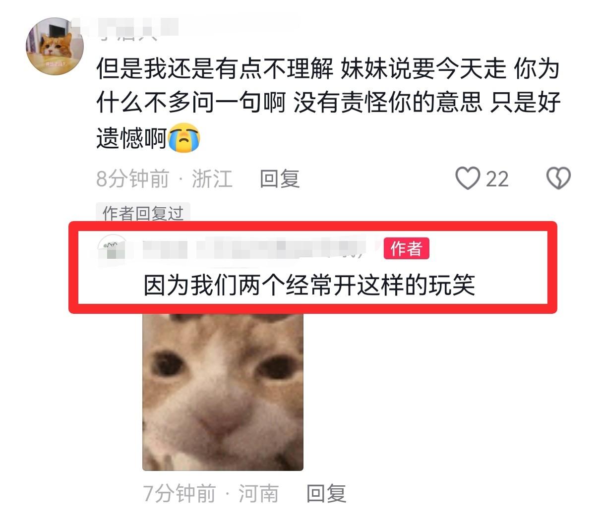 有人疑问,为什么明明妹妹前一天和博主说过要选择离开,但是博主没有和父母说这件事,博主也回应了,因为她们姐妹俩以前经常开这样的玩笑。