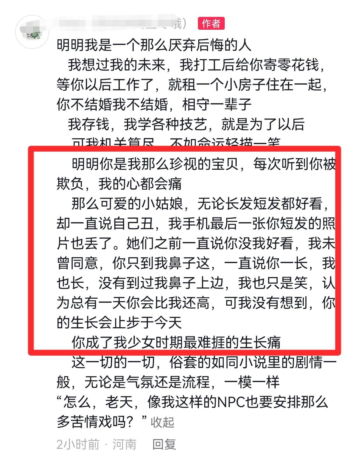 姐姐在评论区里说,妹妹的离开和父母有关系。她没有细说,但能猜个大概。