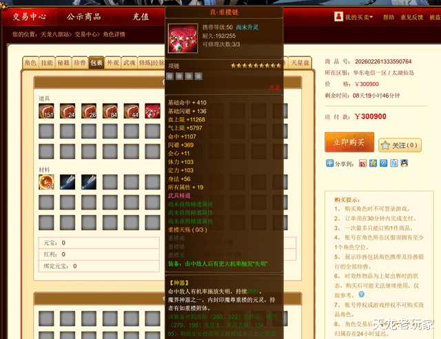 不过自此之后,真重楼就绝版了,【太湖仙岛】服务器这么多年也没有经历过合区,因此不绑定的真链子仅此一条,30万的价格基本上是实价了,只看最后由哪位大佬收入囊中了。